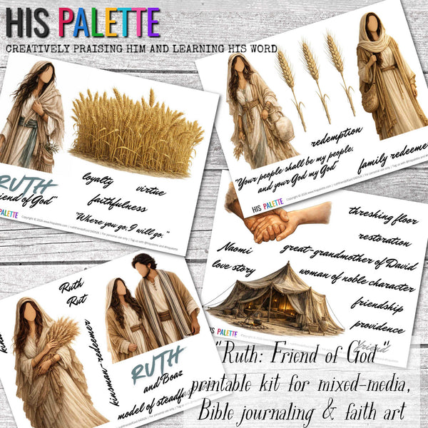 His Palette - "Ruth: Friend of God" printable kit for mixed-media, Bible journaling and faith art